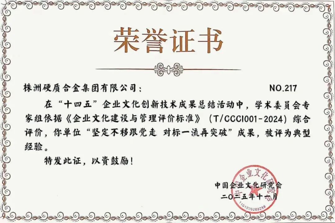 近日,中国企业文化研究会公布“十四五”企业文化创新技术成果评选结果,经中国五矿推荐和专家评审,中钨高新(000657)企业文化创新成果《守正创新 文化强企 谱写企业高质量发展新篇章》被评为“企业文化建设与管理典型案例”,所属株硬公司企业文化创新成果《坚定不移跟党走 对标一流再突破》被评为“企业文化建设与管理典型经验”。
