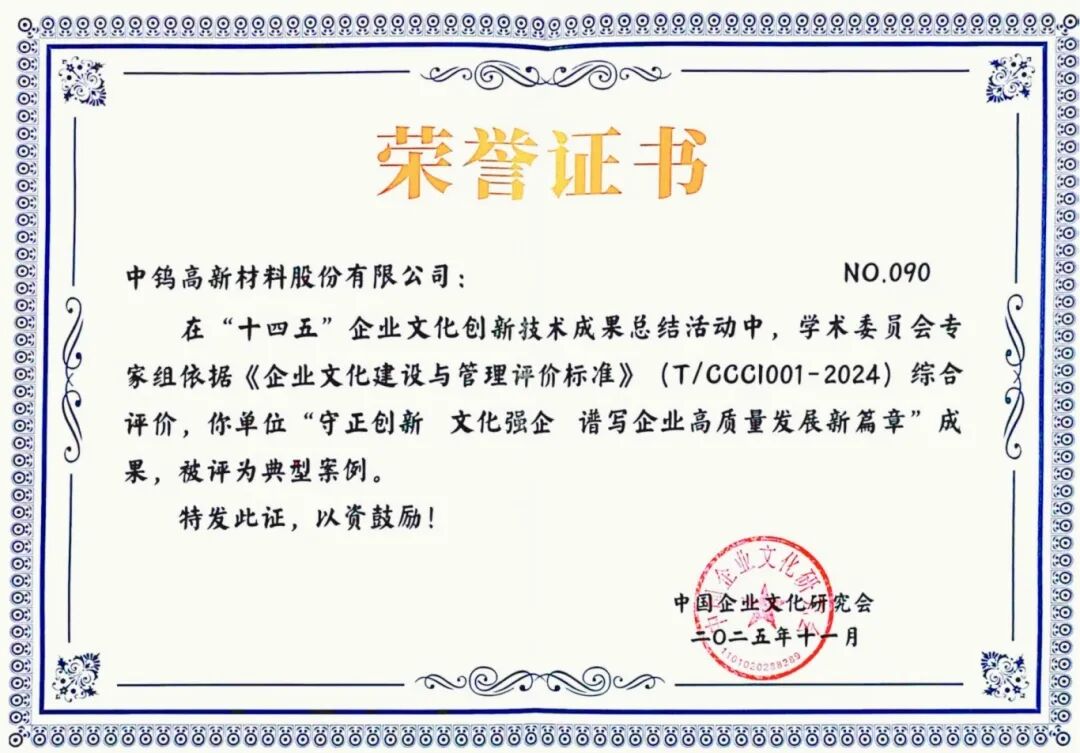 近年来,中钨高新及所属企业深入学习贯彻习近平文化思想,传承中国五矿企业文化体系,让全体职工深刻理解“矿业报国、矿业强国”的初心使命,让“世界一流的使命担当、自主创新的引领作用、问题导向的工作思维、精益求精的品质坚守、敢于胜利的奋斗精神”成为共同的行动指南、价值导向、企业精神。塑造与发展相适应的特色企业文化,确立了“千提百炼,其利断金”企业精神特质,“诚信、专业、创新、高效”共同价值观、“中国制造用中钨工具,世界制造有中国工具”使命目标和“助力创造美好生活”企业愿景,鲜明提出“建设具有全球竞争力的世界一流钨产业集团”战略目标,构建出“愿景目标一致、使命价值观统一、企业各具特色”的文化体系。通过强化政治保障、深化顶层设计、优化管理体系,巩固了企业文化体系建设“三大保障”,培育出“党建赋能、创新破壁、管理提质、安环筑基、品牌铸魂”五个维度特色文化,大力夯实企业高质量发展的文化根基。