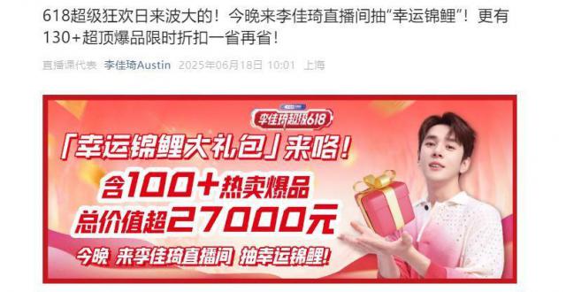 按照李佳琦 Austin 公众号发布的预告信息做不完全统计,6 月份以来,在 5 日、6 日、7 日、12 日、13 日、14 日的淘宝直播间中,都有李佳琦的身影。