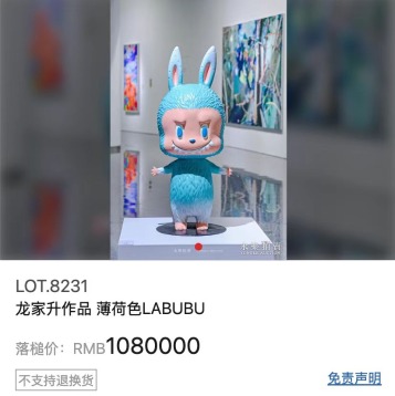 如果真是为了投资,考虑升值的话,可能这次190万元的价格就是我在卖了。在我眼里,LABUBU就是一种潮玩,而非传统意义上的艺术品。可能有人把它当成艺术品来看待,觉得拍出几百万元没问题,这是大家的观念不同。我认为,真正的艺术品可能是字画、古董或者高端珠宝,而LABUBU更多是玩具。