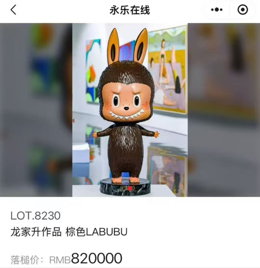 108万元的薄荷色LABUBU、82万元的棕色LABUBU。6月10日,一场拍卖会将当下热门IP(具有商业价值的创意内容或品牌)、龙家升创作的LABUBU推上了新的风口浪尖:48件作品总成交额高达373万元,引发市场广泛关注。